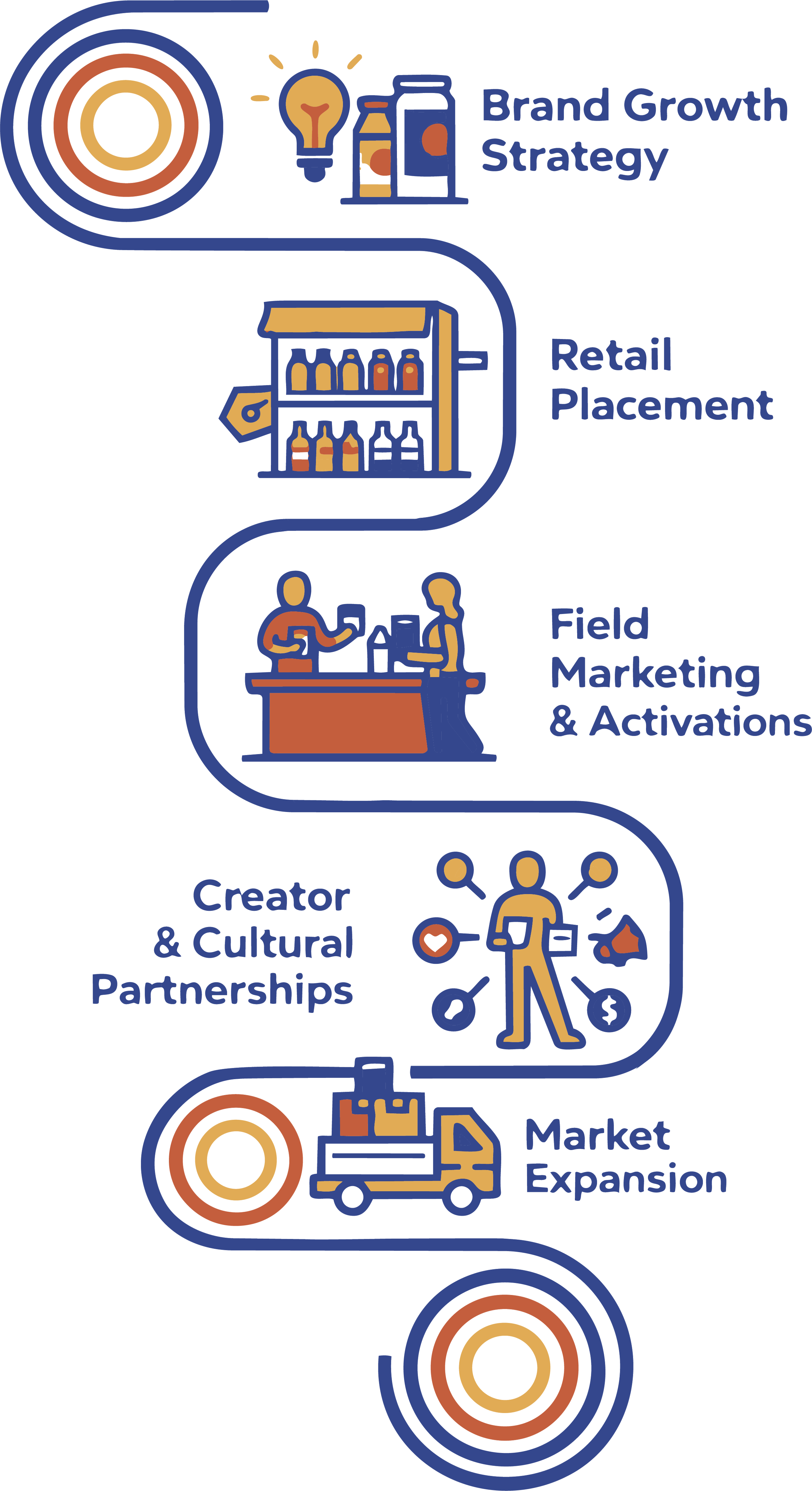 From retail placement and field marketing to creator collaborations and activations, we help brands show up where consumers actually shop, sip, and discover.